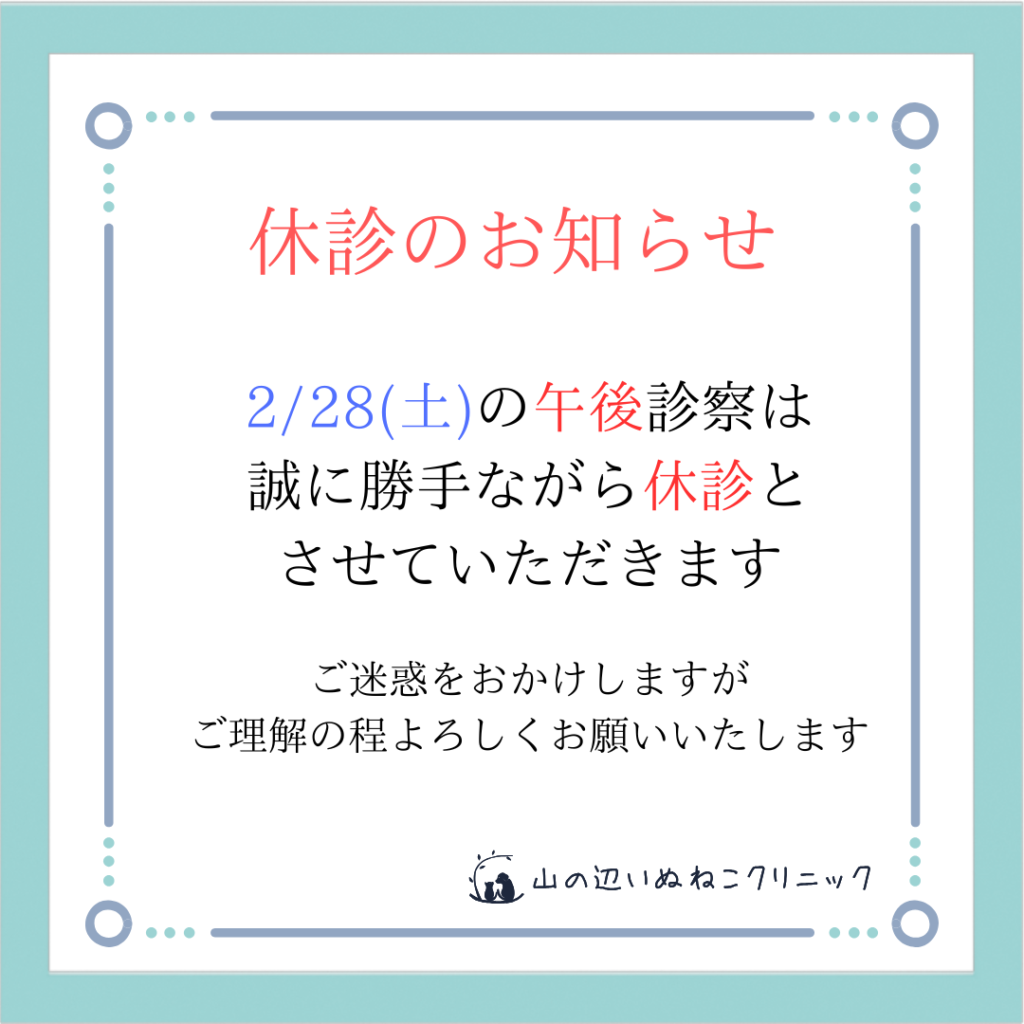 2/28(土)の午後診察は、まことに勝手ながら休診とさせていただきます。